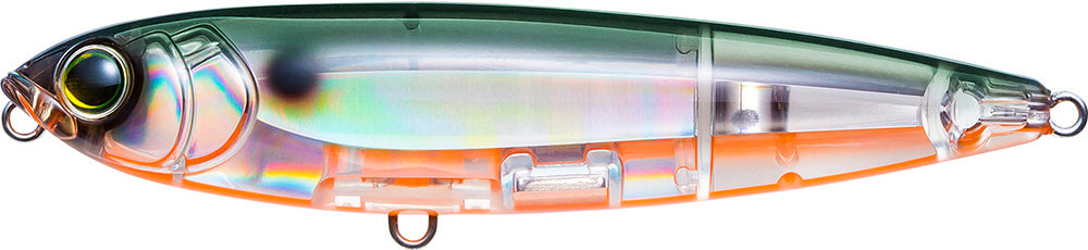 It's intended to sit flat on the water (as opposed to tail down), which makes it easier to walk than most topwater walkers and produces a more consistent action. Designed with a single "one-knock" cadence rattle, it emits a very loud knock while also serving as a weight transfer system for extreme casting distance!