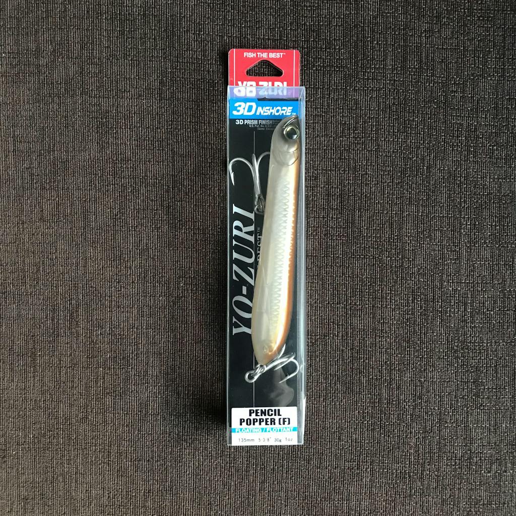 • The Yo-Zuri 3D Inshore Pencil Popper is a back-bay style pencil popper with a flat bottom and horizontal posture that is perfect for walking!