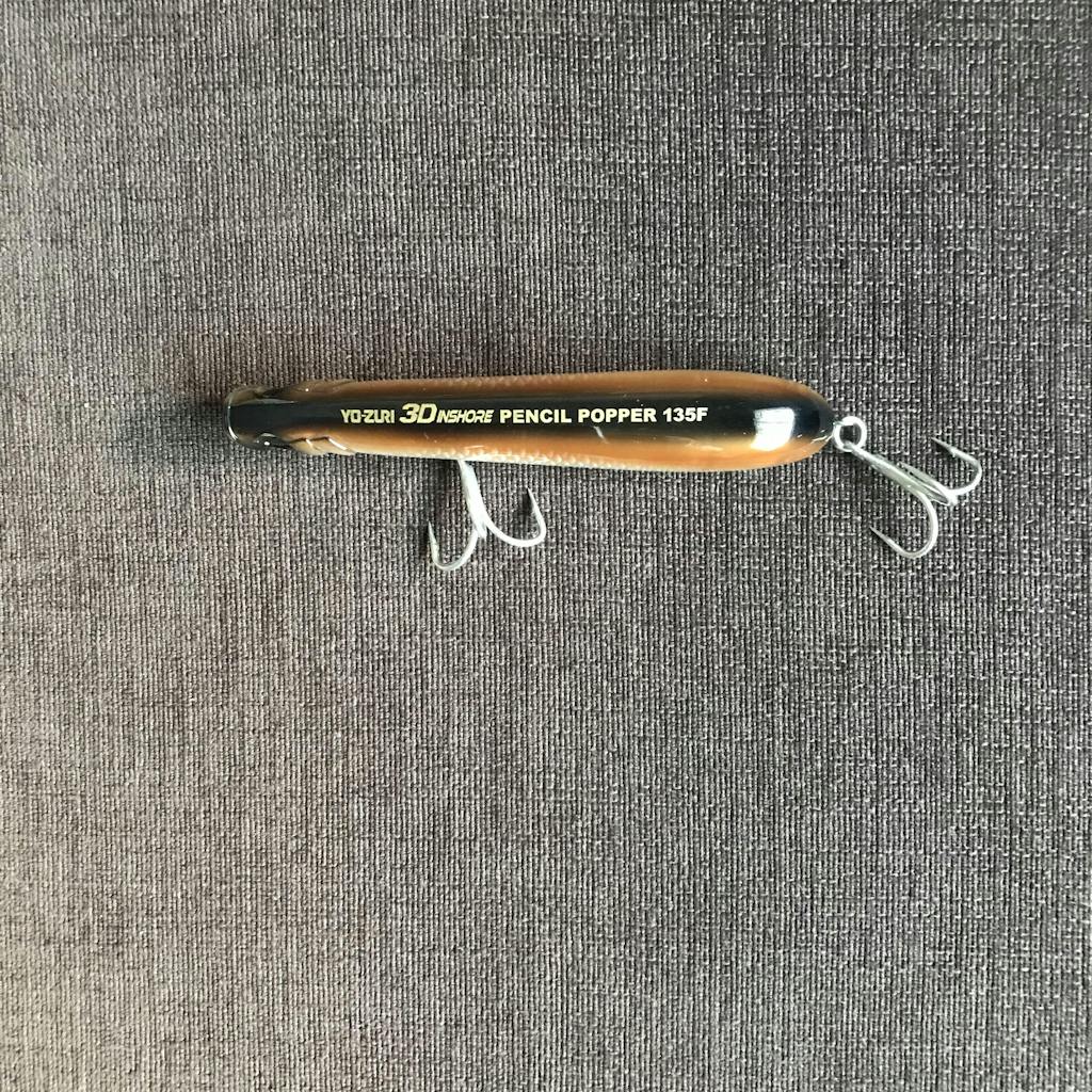 This is a Great Engineered lure for a very affordable price. I would recommend it to You if this is what you are looking for. It also produces subtle, good splashes from side to side to resemble a skipping baitfish on the surface. The name of the lure is printed on top of the lure too. I know the pictures do not show it though. At that is The End of the YO-ZURI 3D Inshore Pencil Popper in the “Pearl Bronze Shiner” Color.