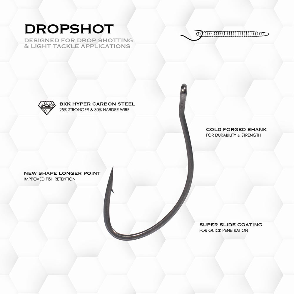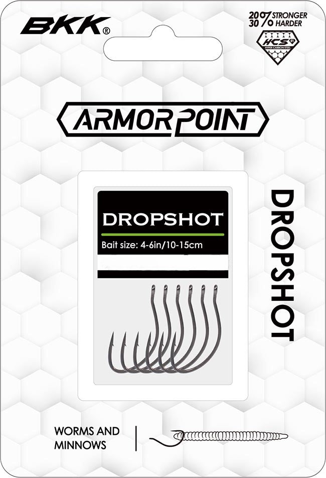 • The all new BKK Armor-Point Dropshot Hooks were developed for drop shotting and other light tackle applications that require strength and sharpness that is unmatched!