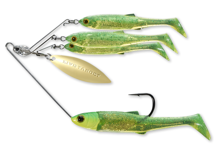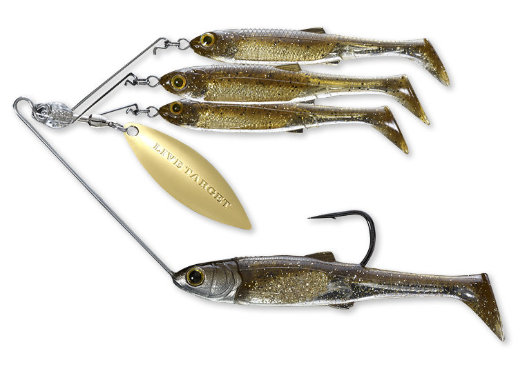 • The LIVETARGET BaitBall Spinner Rig Umbrella Rig combines the anatomically accuracy of realistic baitfish swimbaits, the vibrations of a spinner blade, and the school of fish presentation of an Alabama rig.