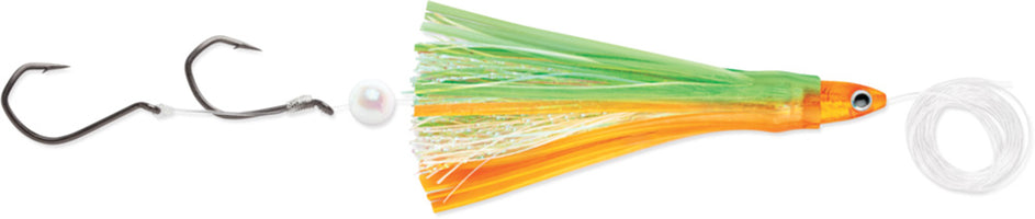 - Designed with an Arrow Shaped Head with a Multi Layered Skirt to create a Lively Action which combines with the UV Reflective Finishes and Everglo Material composition to give it a Glow in the Dark effect that big fish cant resist!